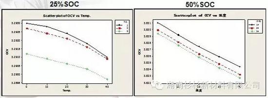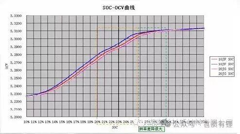 dOCV/dT受SOC影响,温度对OCV的影响在平台处被显著放大,带来很大的SOC预测误差。需选择对温度变化相对不敏感的SOC测试自放电,如:FC1865:25%SOC测自放电;LC1865:50%SOC测自放电。