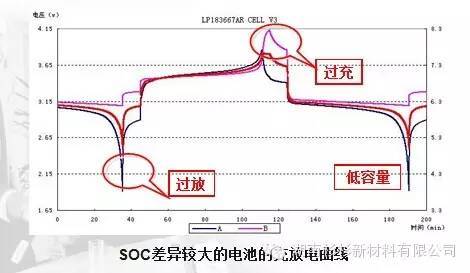 由于电池的自放电不一致,导致电池组内电池在储存后SOC产生差异,电池性能下降。客户在拿到储存过一段时间的电池组之后经常能够发现性能下降的问题,当SOC差异达到20%左右的时候,组合电池的容量就只剩余60%~70%。