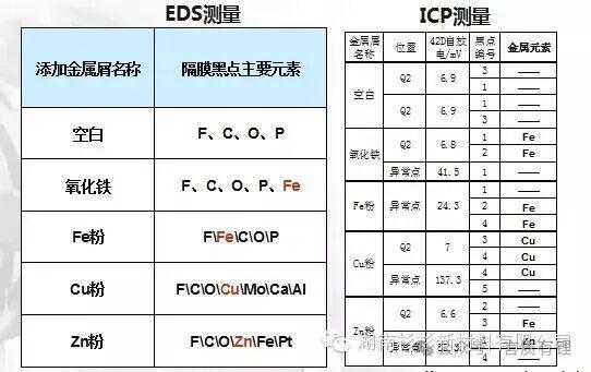 隔膜黑点的金属元素成分与添加的金属种类相吻合,说明隔膜黑点上的金属元素确实来源于金属杂质: