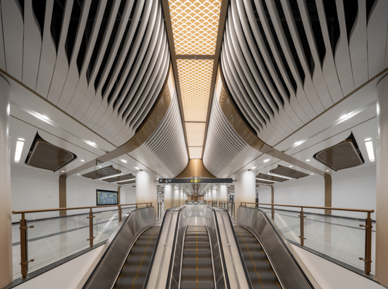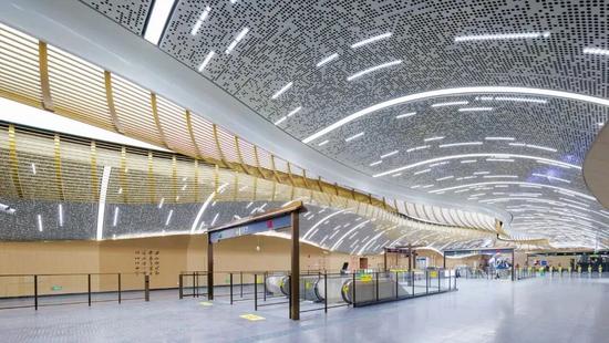 设计团队以 “诗意天府、人文成都” 为主题,将诗歌艺术、文墨书香融入车站空间。3座无柱车站提取杜甫诗歌元素,通过现代手法营造出兼具艺术感与实用性的乘车环境。