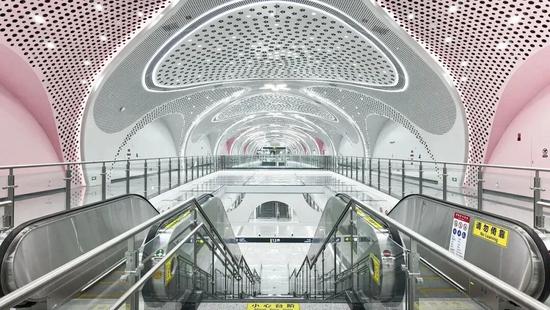 全线还配备411部自动扶梯、65部无障碍垂直电梯,居第四期建设规划线路之首。同时,配备宽通道闸机、母婴室等全龄友好设施,可智能调节站内环境的高效自适应通风空调系统等应用,致力于让市民获得更高质量、更具幸福感的出行体验。