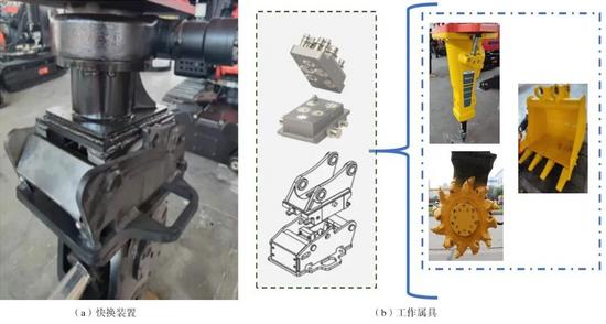 (1)工作装置主要由快换机构与不同工作属具组成。
