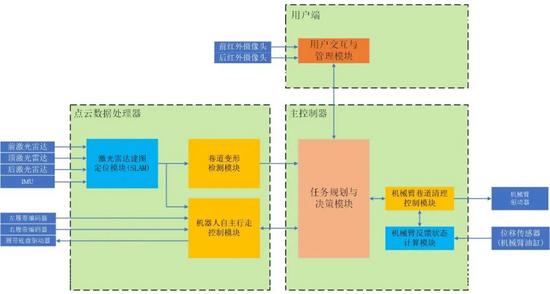 (4)控制系统的车体定位数据、机械臂位姿数据和巷道机器人清理数据等可通过网络层上传至后台,完成进一步的处理和分析。