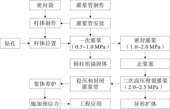 二次高压灌浆预应力锚固技术有助于提高锚固段岩体的力学性能,有效控制围岩变形。首次注浆填充裂隙,二次注浆施加预应力,使浆液渗透至岩体深部,形成复合加固体。通过二次高压灌浆,可提高锚固段岩体的黏聚力、内摩擦角,并增强锚固段岩体所受剪切面上的法向应力以及增大岩体外表面的剪切滑动面积。