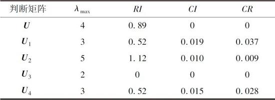 一致性检验结果反映出,所有判断矩阵的CR值均<0.1,满足一致性要求,确保权重分配的合理性。