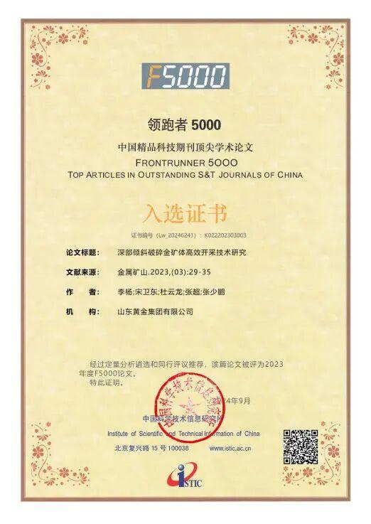 [2] 李杨,宋卫东,杜云龙,等.深部倾斜破碎金矿体高效开采技术研究[J].金属矿山,2023(3):29-35.F5000论文)