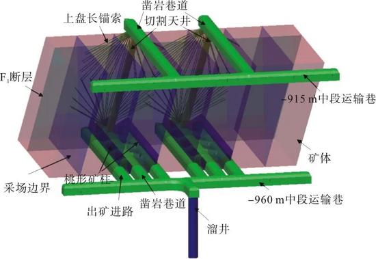 针对三山岛金矿深部-960 m中段的倾斜破碎矿体,平均倾角45°,受断层影响,矿体破碎,提出了一种综合开采技术,即“阶段空场嗣后充填法+二次高压灌浆预应力锚固支护”。