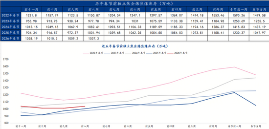 预期来看,明年炼焦煤走势难言乐观,反内卷政策影响消退,基本面过剩矛盾重新积累,终端成材消费及铁水产量仍有下滑预期。因此预估2026年春节前焦钢企业冬储仍将保守,补库量大概与2025年持平,约在430万吨左右,我们看到上周部分焦企已经开始缓慢补库,焦企库存已开始提升,不过由于基本面较为宽松,下游补库压力不大,暂未出现集中补库引发的行情上涨。
