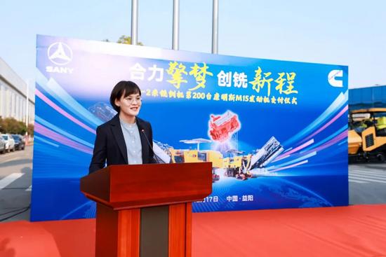 康明斯战略客户业务总经理黄晶晶也在仪式上致辞,她表示,康明斯与三一的合作由来已久,双方在技术、质量、服务等多领域的深度协同,为客户打造了更高效、可靠的产品解决方案。未来,康明斯将继续与三一携手,持续为客户创造更大价值。