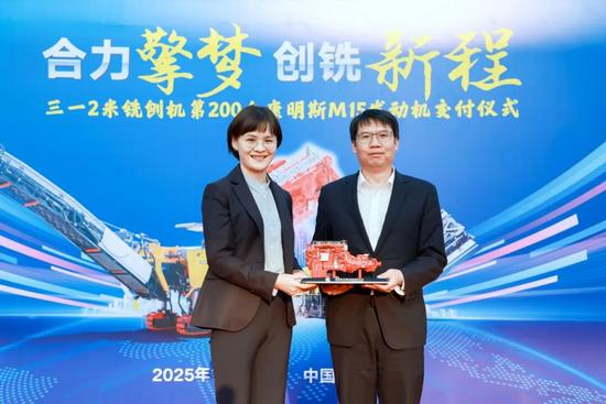 在全场嘉宾的见证下,双方完成了第200台康明斯M15发动机的交付,并共同合影留念,定格这一重要时刻。此次交付仪式的圆满举行,标志着三一与康明斯的合作迈入新阶段。未来,双方将继续发挥各自优势,在工程机械动力领域持续创新,以更优质的产品和服务,为行业发展注入新动能。