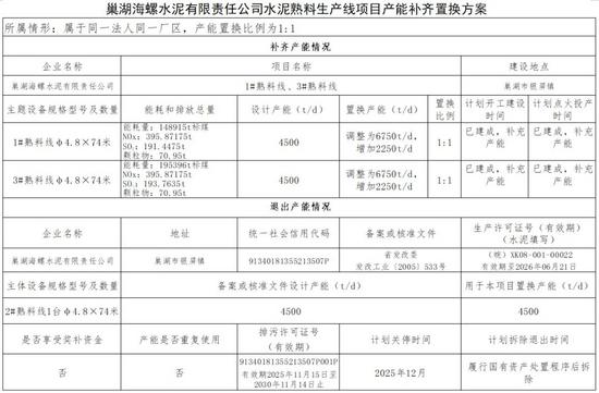 12月18日,合肥市工业和信息化局发布《关于巢湖海螺水泥有限责任公司水泥熟料生产线产能补齐置换方案的公示》称,根据《水泥玻璃行业产能置换实施办法(2024年本)》等文件要求,巢湖海螺水泥有限责任公司#4500t/d和3#4500t/d两条水泥熟料生产线通过补产能方式将产能分别增加到1#6750t/d和3#6750t/d置换产能来自巢湖海螺水泥有限责任公司2#4500t/d水泥熟料生产线,置换比例均为1:1。现将产能补齐置换方案予以公示。