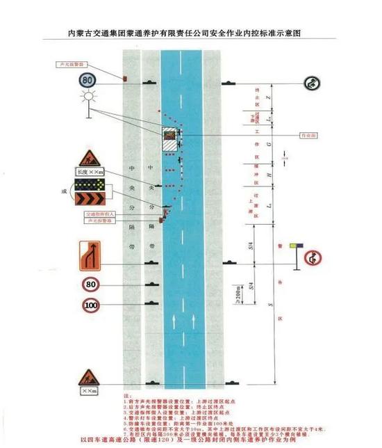 6.蒙通养护公司依据《道路交通标志和标线第4部分:作业区》(GB5768.4—2017及交通运输部《公路养护安全作业规程》(JTG H30—2015。结合各类养护作业安全管理经验,编制了企业标准《高速公路养护作业区布控安全标准化指南》(AQ1001—2025。同时,出台了横向锥桶“网格化”锥桶布设及特殊路段路锥间距为6米等工作要求。