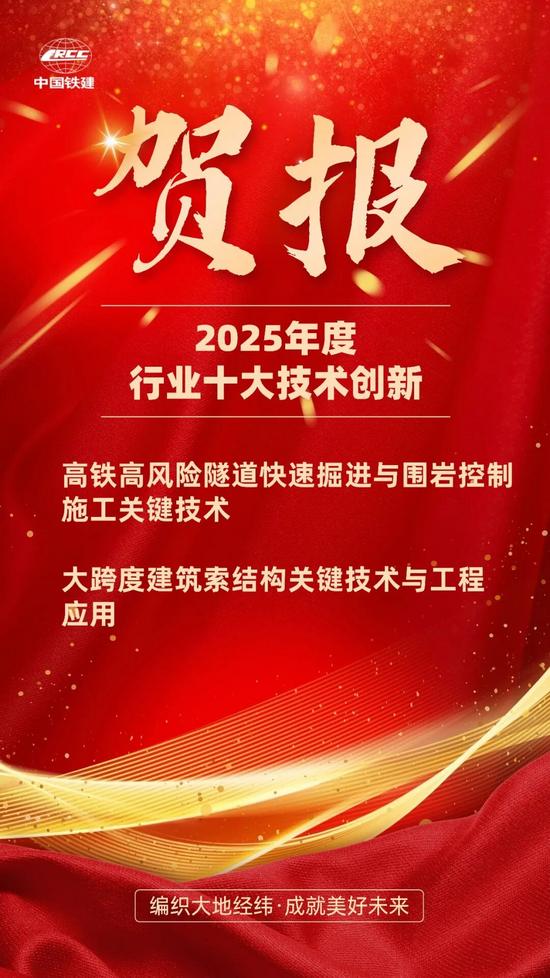 12月18日,中国建筑业协会在海口召开年度行业技术创新大会。会上发布了2025年度行业十大技术创新名单,由中国铁建及所属单位研究完成的“高铁高风险隧道快速掘进与围岩控制施工关键技术”“大跨度建筑索结构关键技术与工程应用”成果荣登榜单。