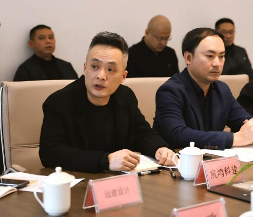 宸鸿科建副总经理范健(左)发言。图片来源:自贡市住建局