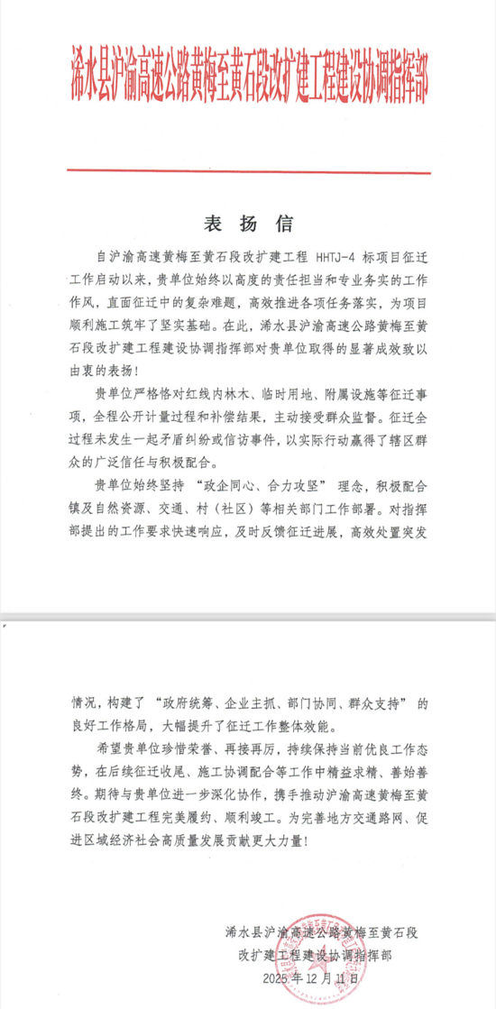 黄黄改扩建4标项目秉持高度的政治责任感与使命担当,以高效务实的执行力统筹推进征迁工作。过程中积极配合各级部门工作部署,主动接受群众监督,征迁全过程以实际行动赢得了辖区群众的广泛信任,大幅提升了征迁工作整体效能。