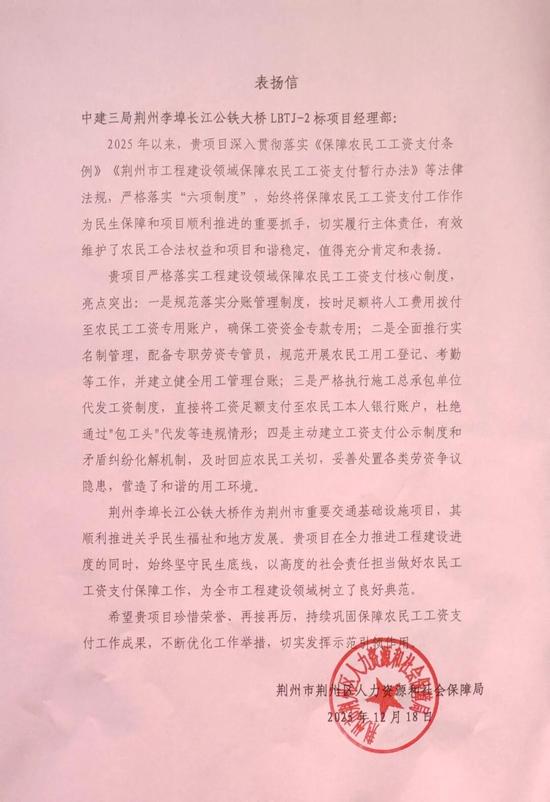 李埠项目贯彻落实《保障农民工工资支付条例》等法律法规,严格落实“六项制度”,始终将保障农民工工资支付工作作为民生保障和项目顺利推进的重要抓手,切实履行主体责任,有效维护了农民工合法权益和项目和谐稳定,为全市工程建设领域树立了良好典范。