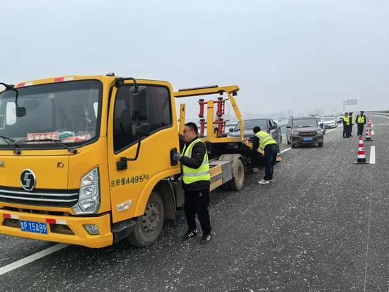 在除雪防滑演练推进的同时,一场突发事故应急处置演练平行开展。演练模拟东阳高速阳谷方向发生三辆小型客车连续追尾事故,监控中心接到报警后,立即启动多方联动应急机制,快速调度养护工区、高速交警、交通综合执法及清障救援单位赶赴现场。各参演单位反应迅速、分工明确,现场安全防护设置、交通疏导、事故车辆拖离等工作无缝衔接、高效推进,最终成功妥善处置事故,道路快速恢复畅通,圆满完成应急处置任务。